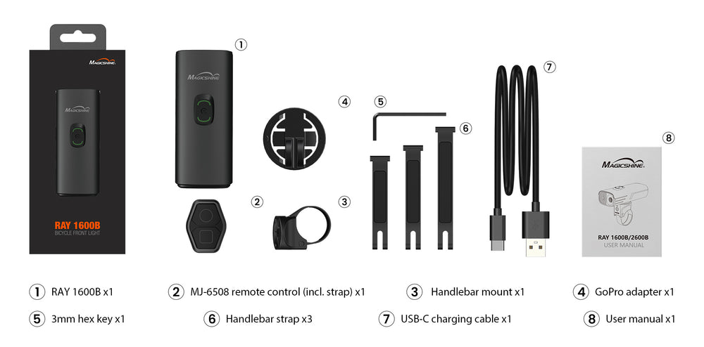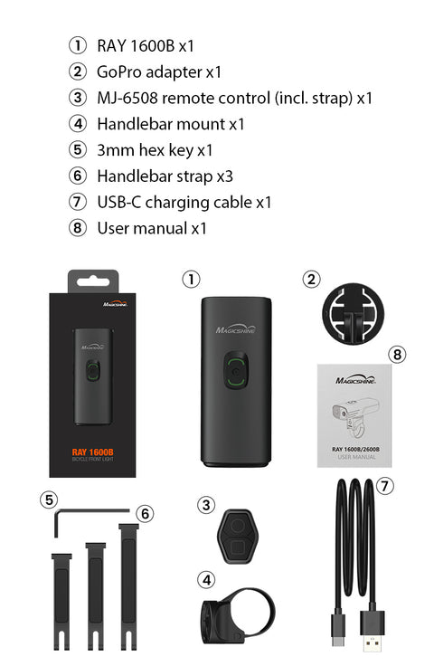 With its two high-power LEDs, the RAY 1600B delivers an impressive output of up to 1600 lumens, making it an exceptional all-rounder that seamlessly transitions from urban streets to challenging trails.